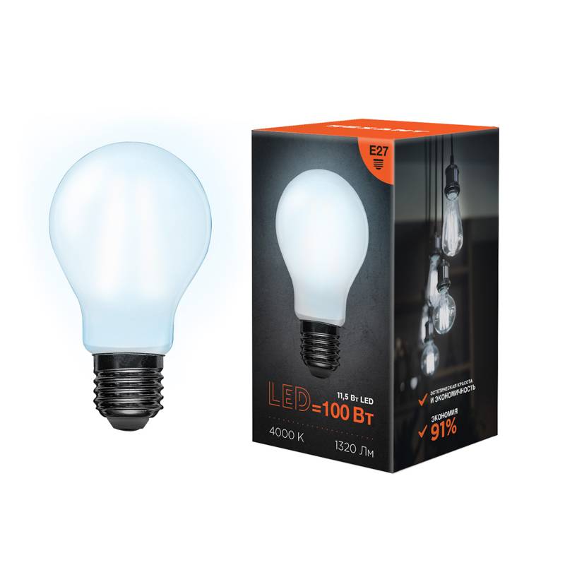 Лампа филаментная REXANT Груша A60 11.5 Вт 1320 Лм 4000K E27 матовая колба