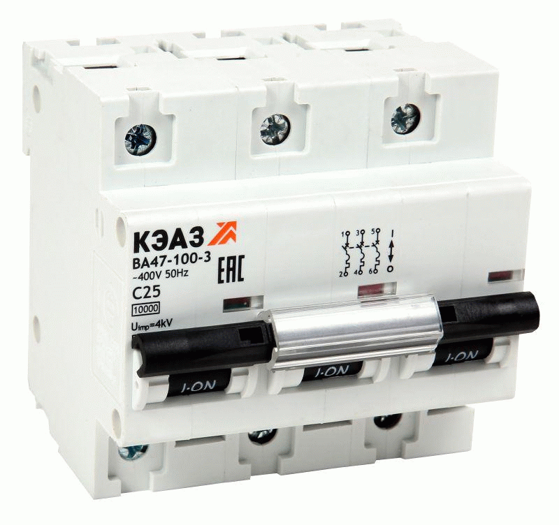 Выключатель автоматический модульный 3п C 25А 6кА OptiDin BM63-3C25-УХЛ3 КЭАЗ 260794