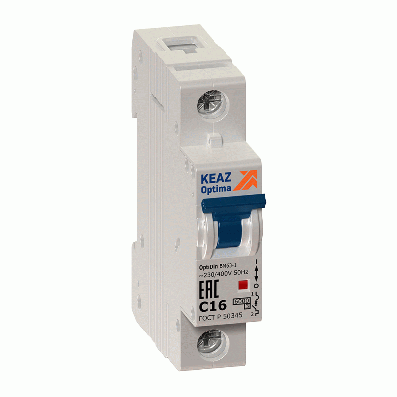 Выключатель автоматический модульный 1п C 16А 6кА OptiDin BM63-1C16-УХЛ3 КЭАЗ 260503