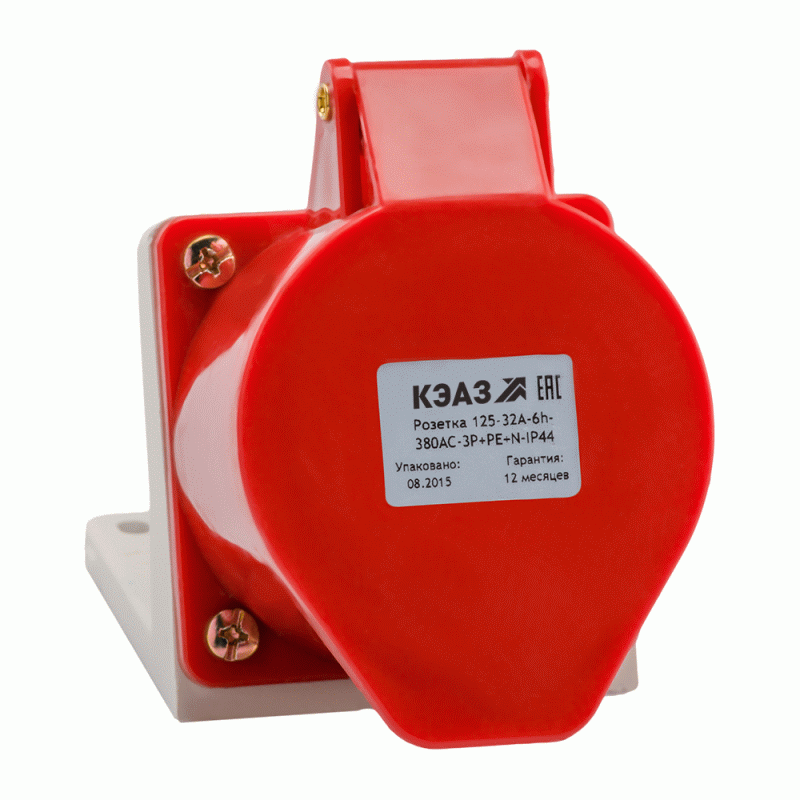 Розетка 125 32А 380В AC 3P+PE+N 6ч для монтажа на поверхность IP44 КЭАЗ 222757