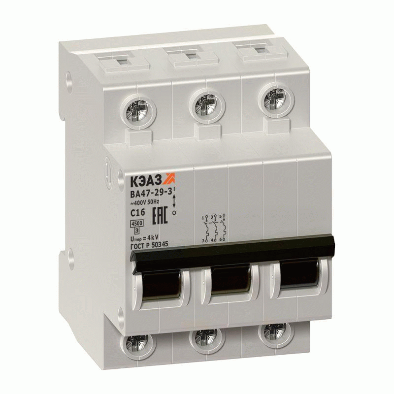 Выключатель автоматический модульный 3п C 16А 6кА OptiDin BM63-3C16-УХЛ3 КЭАЗ 260791