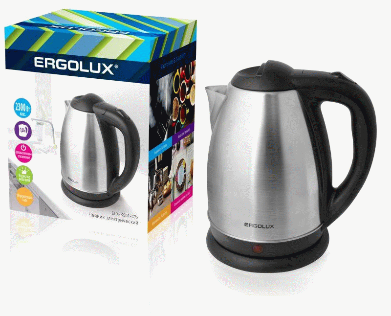 Чайник ELX-KS02-C01 нерж.сталь/пластик 1.8л 160-250В 1500-2300Вт бел. Ergolux 13122