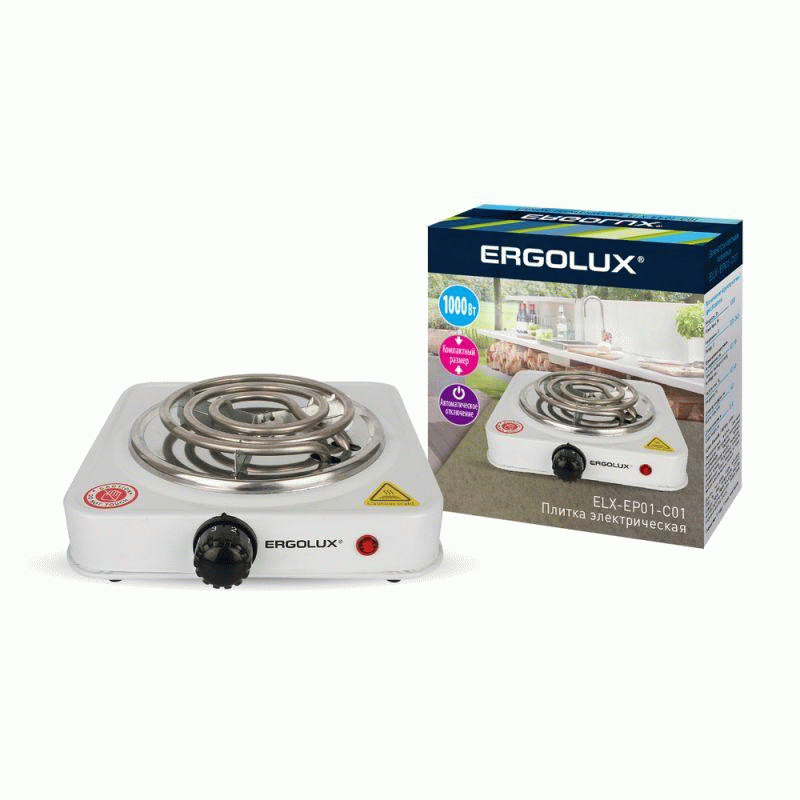 Электроплитка ELX-EP01-C01 1 конф. спиральный нагр. эл. 1000Вт 220-240В бел. Ergolux 13436