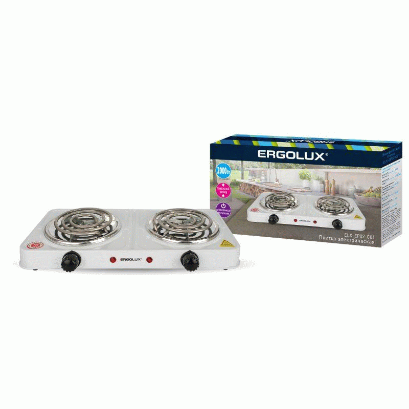Электроплитка ELX-EP02-C01 2 конф. спиральный нагр. эл. 2000Вт 220-240В бел. Ergolux 13437