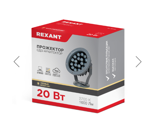 Прожектор светодиодный СДО-АРХИТЕКТОР 20Вт 1600Лм 2700K тёплый свет (110-240В, 2PIN, угол рассеивания 14°) серый корпус REXANT