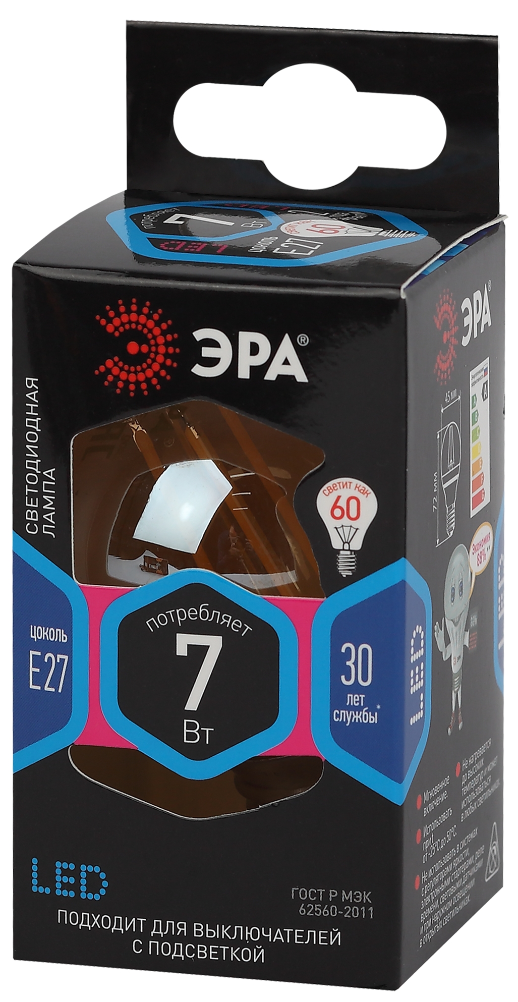 Лампочка светодиодная ЭРА F-LED P45-7W-840-E27 gold E27 / Е27 7Вт филамент шар золотистый нейтральный белый свет