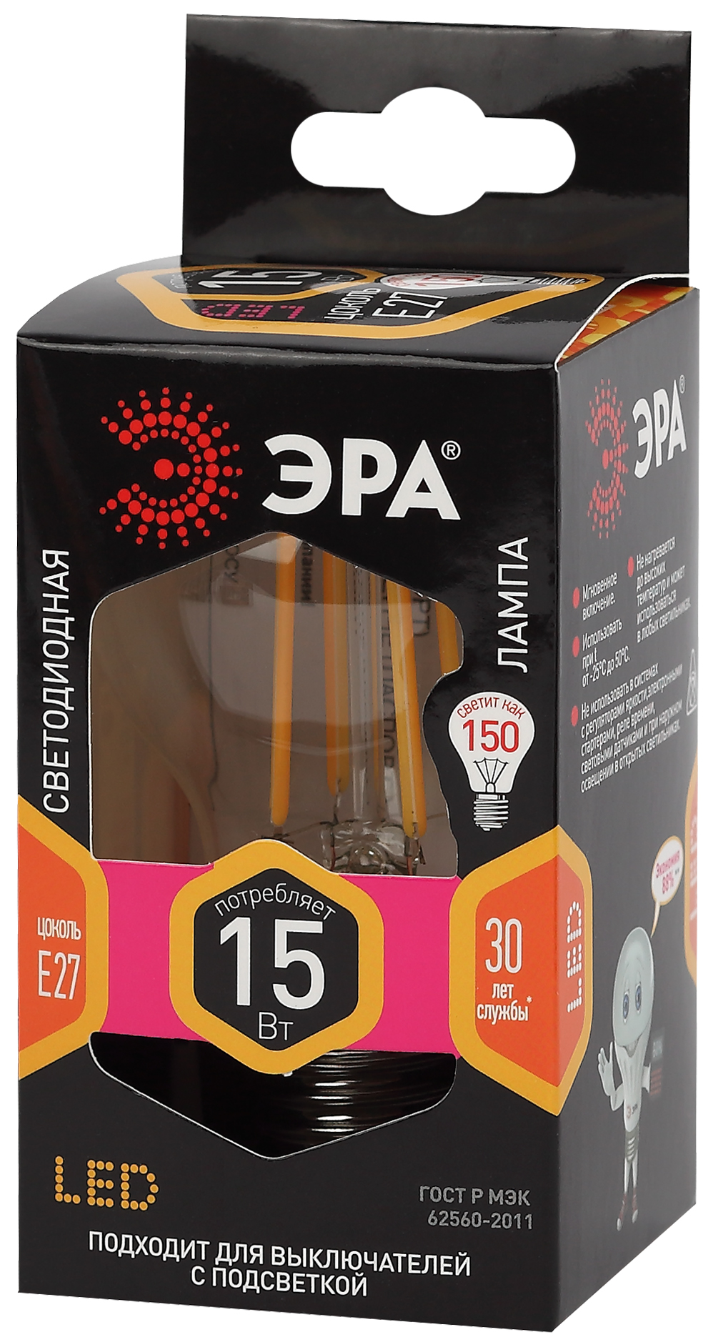 Лампочка светодиодная ЭРА F-LED A60-15W-840-E27 Е27 / Е27 15Вт филамент груша нейтральный белый свет