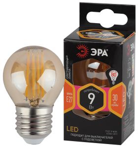 Лампочка светодиодная ЭРА F-LED P45-9W-827-E27 gold E27 / Е27 9Вт филамент шар золотистый теплый белый свет
