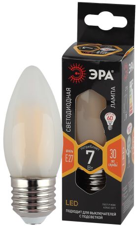 Лампочка светодиодная ЭРА F-LED B35-7W-827-E27 frost E27 / Е27 7 Вт филамент свеча теплый белый свет