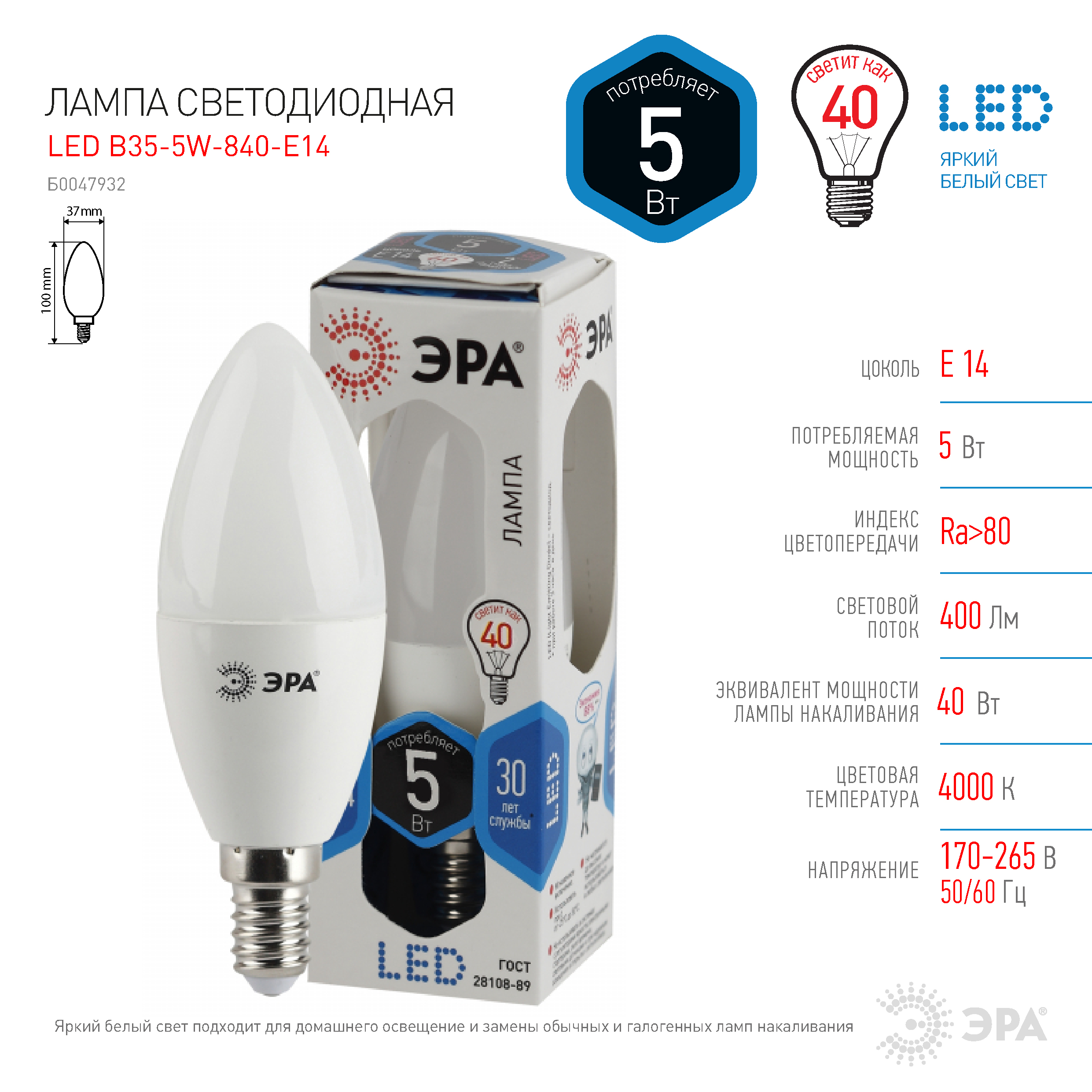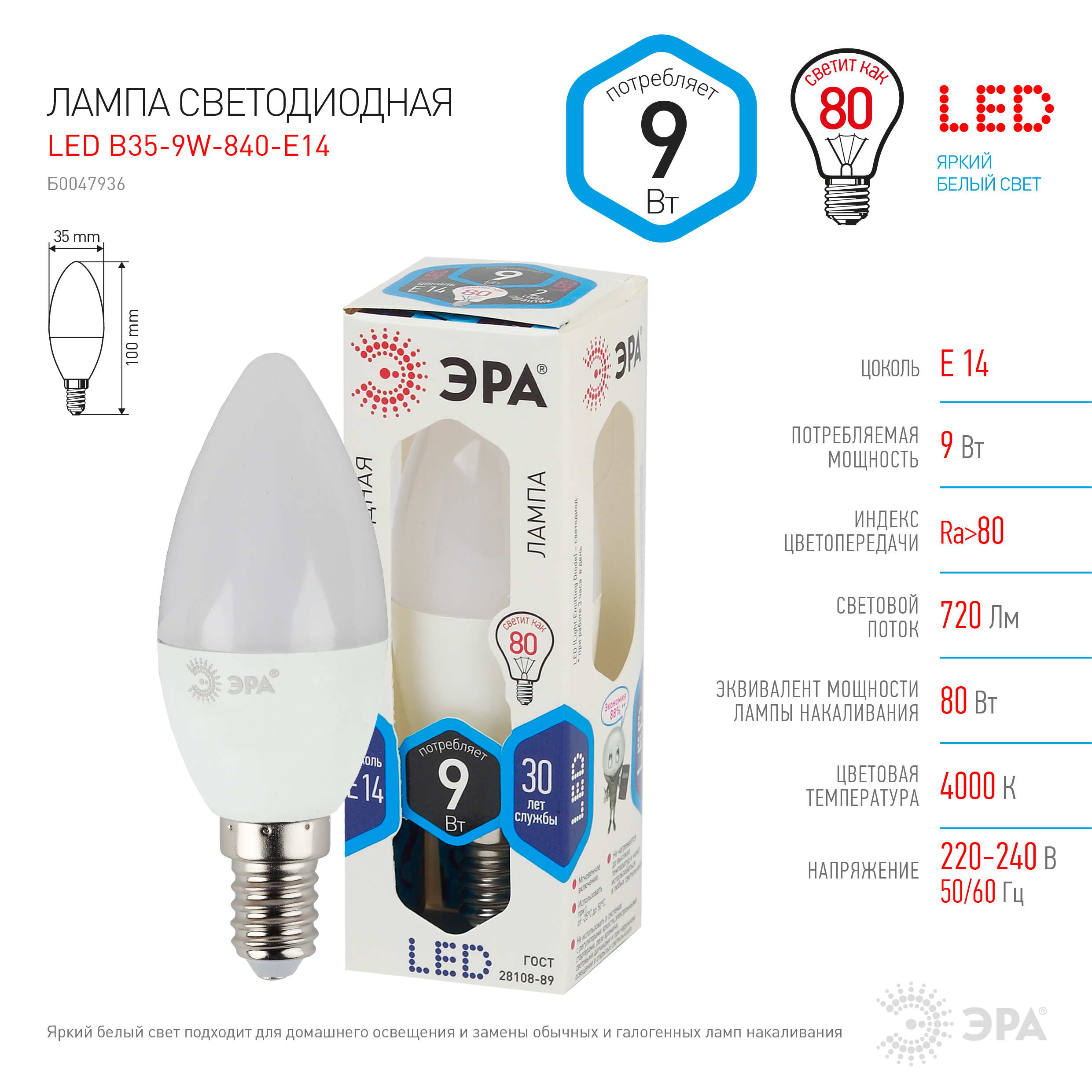 Лампочка светодиодная ЭРА RED LINE LED B35-10W-840-E14 R Е14 / E14 10 Вт свеча нейтральный белый свет
