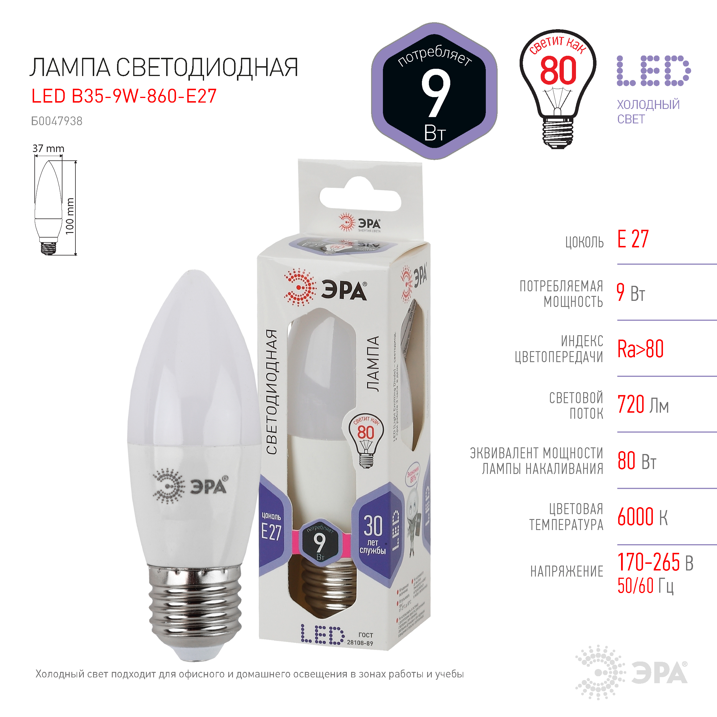 Лампочка светодиодная ЭРА STD LED A60-9W-12/48V-840-E27 E27 / Е27 9Вт груша нейтральный белый свет