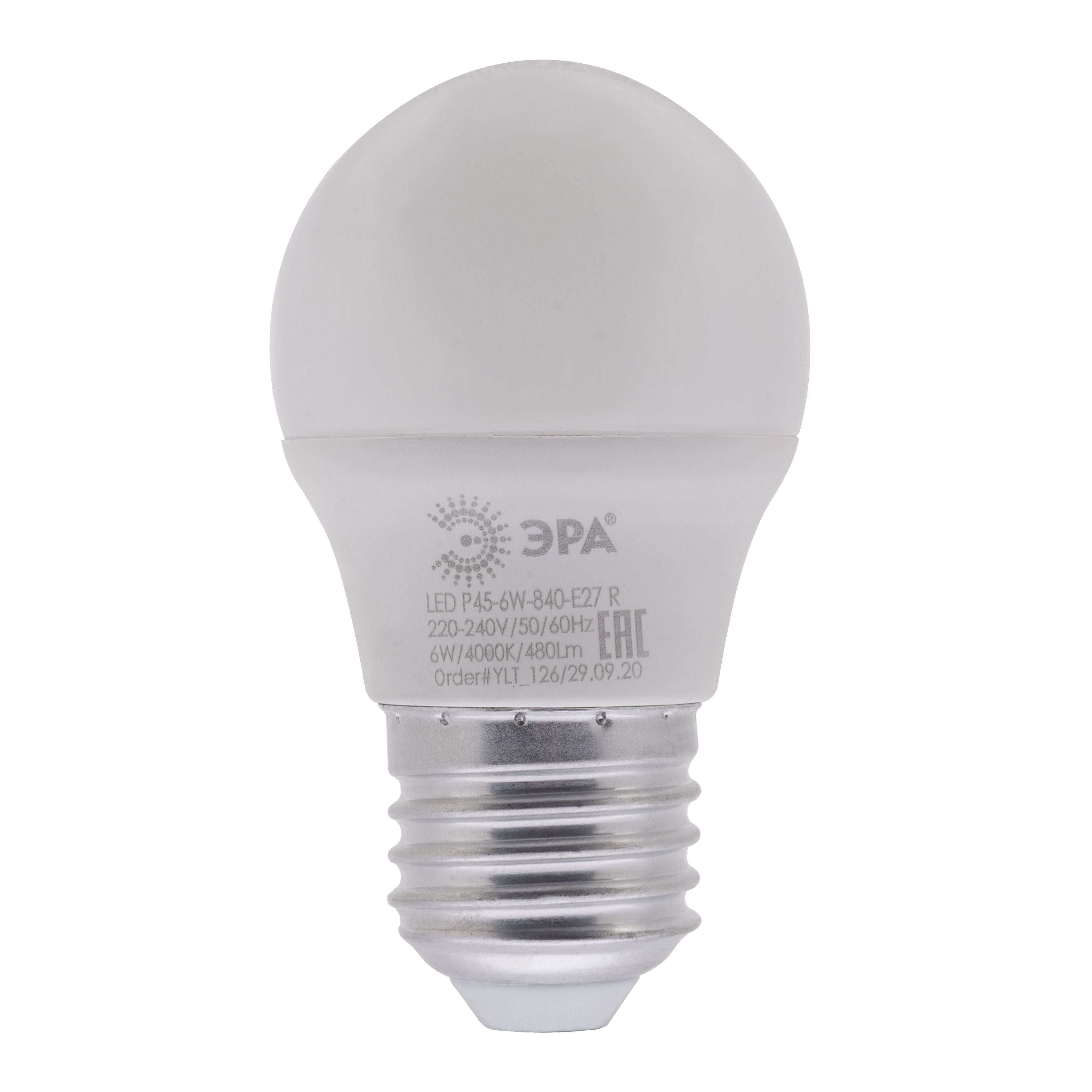 Лампочка светодиодная ЭРА RED LINE LED P45-6W-840-E27 R E27 / Е27 6Вт шар нейтральный белый свет