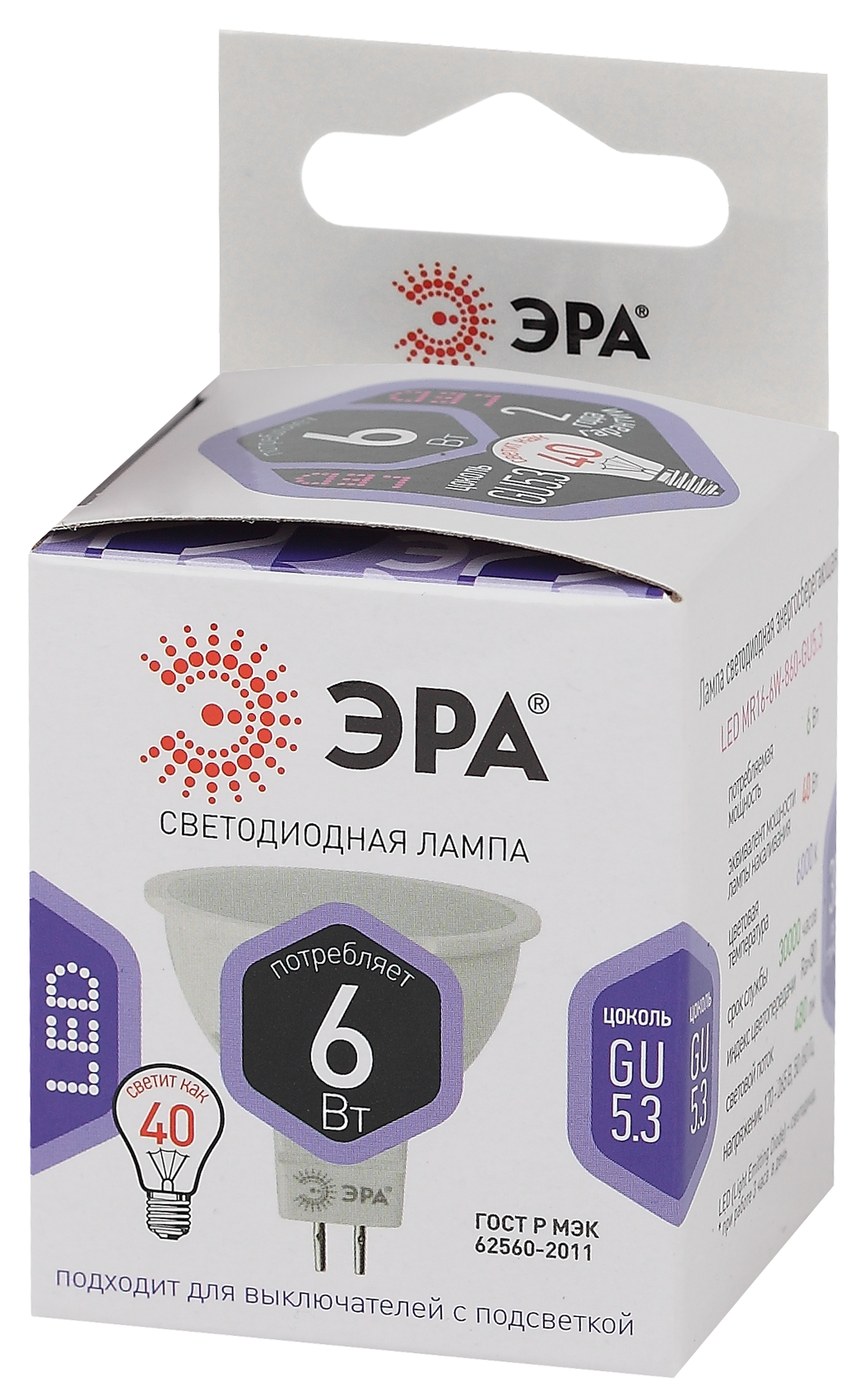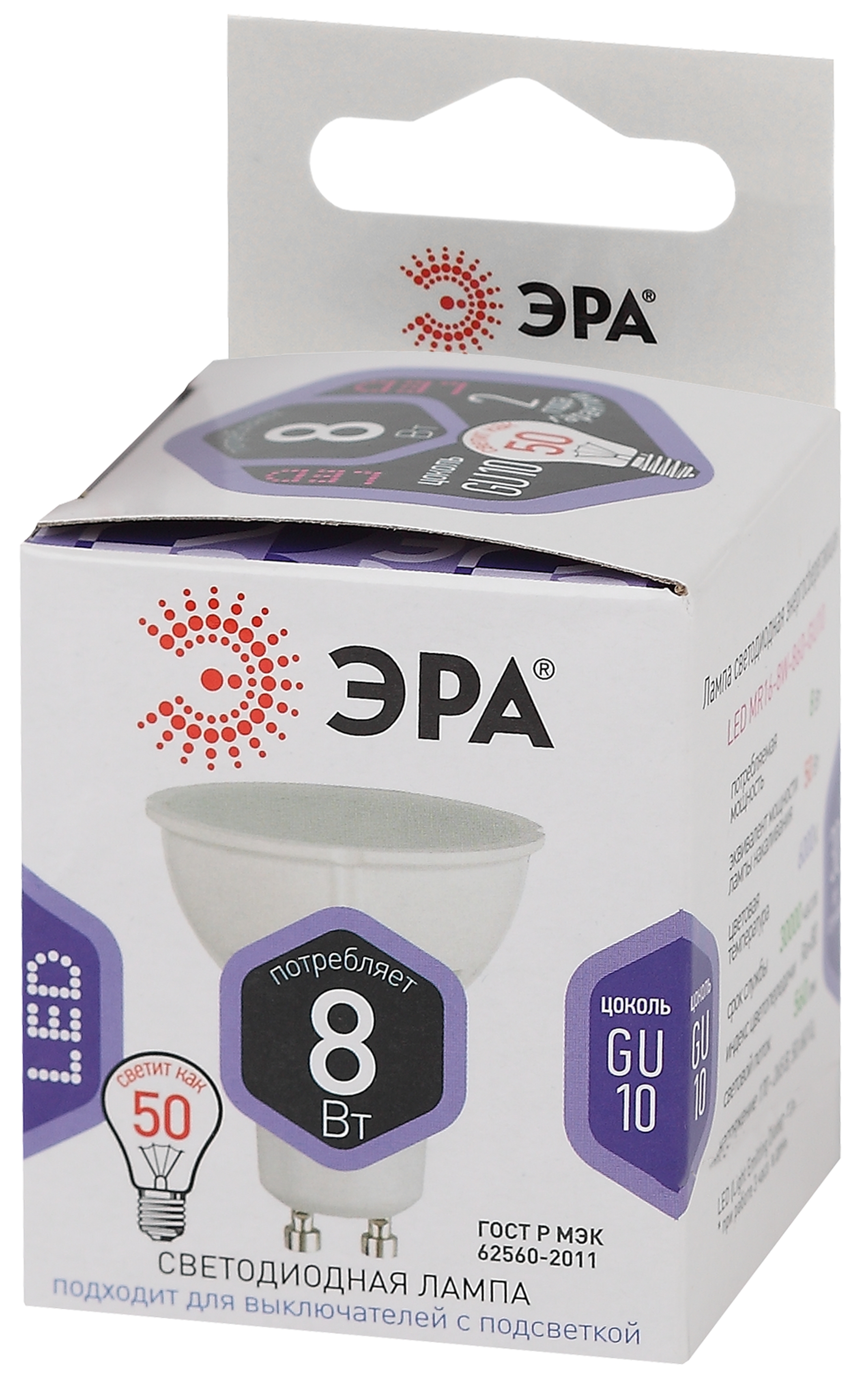 Лампочка светодиодная ЭРА STD LED MR16-8W-12V-860-GU5.3 GU5.3 8 Вт софит холодный дневной свет