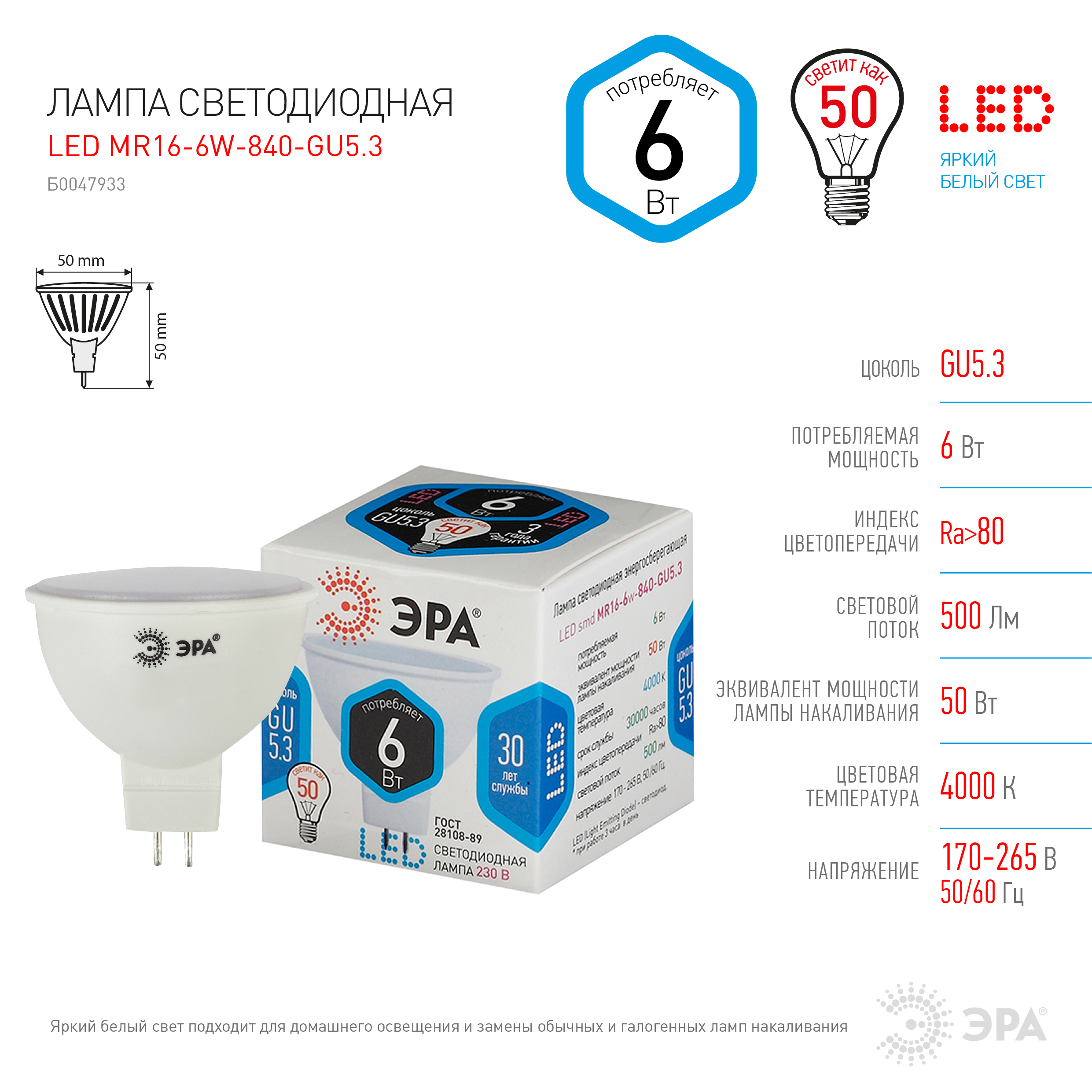 Лампочка светодиодная ЭРА RED LINE LED MR16-5W-840-GU5.3 R GU5.3 5 Вт софит нейтральный белый свет