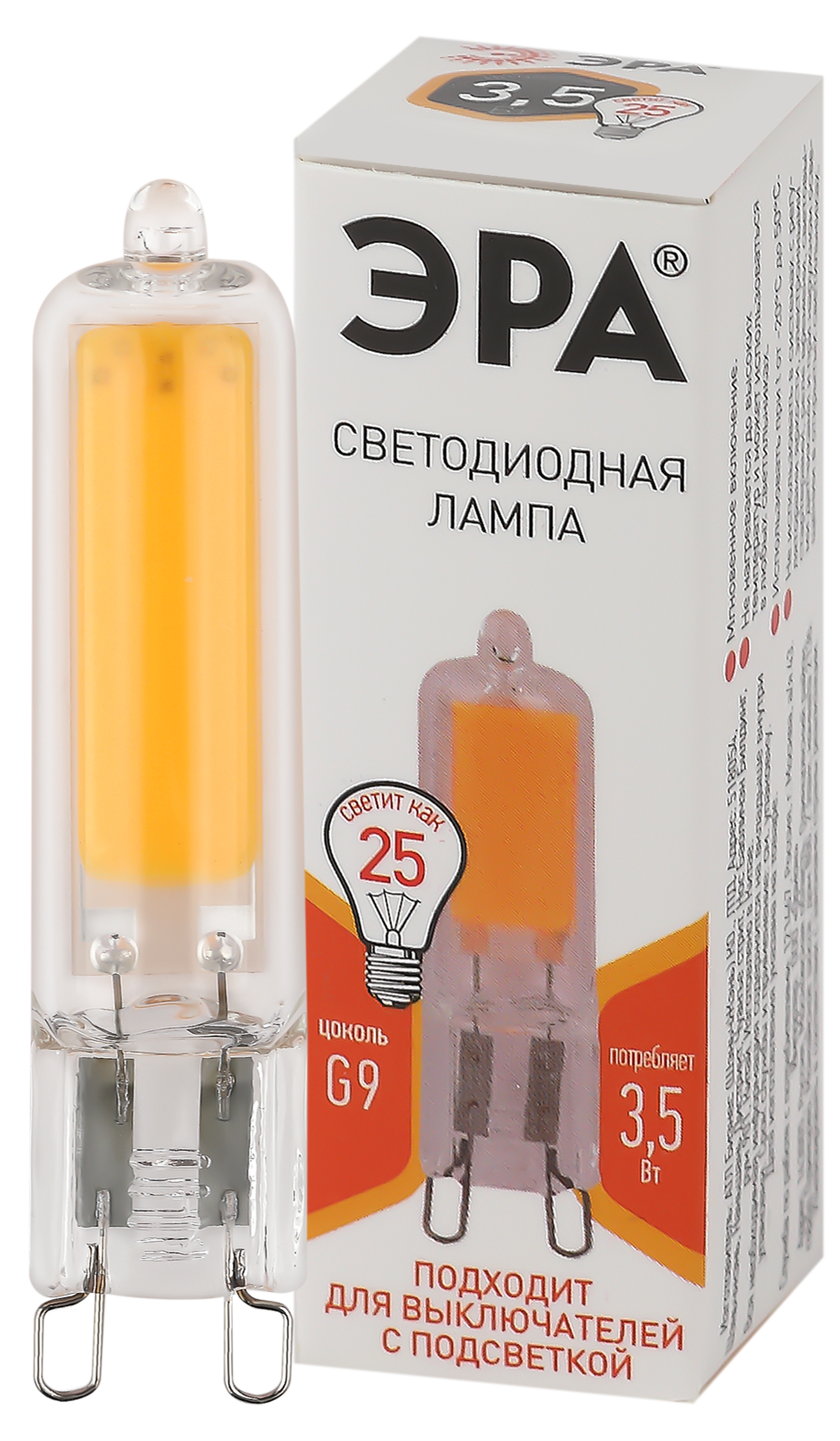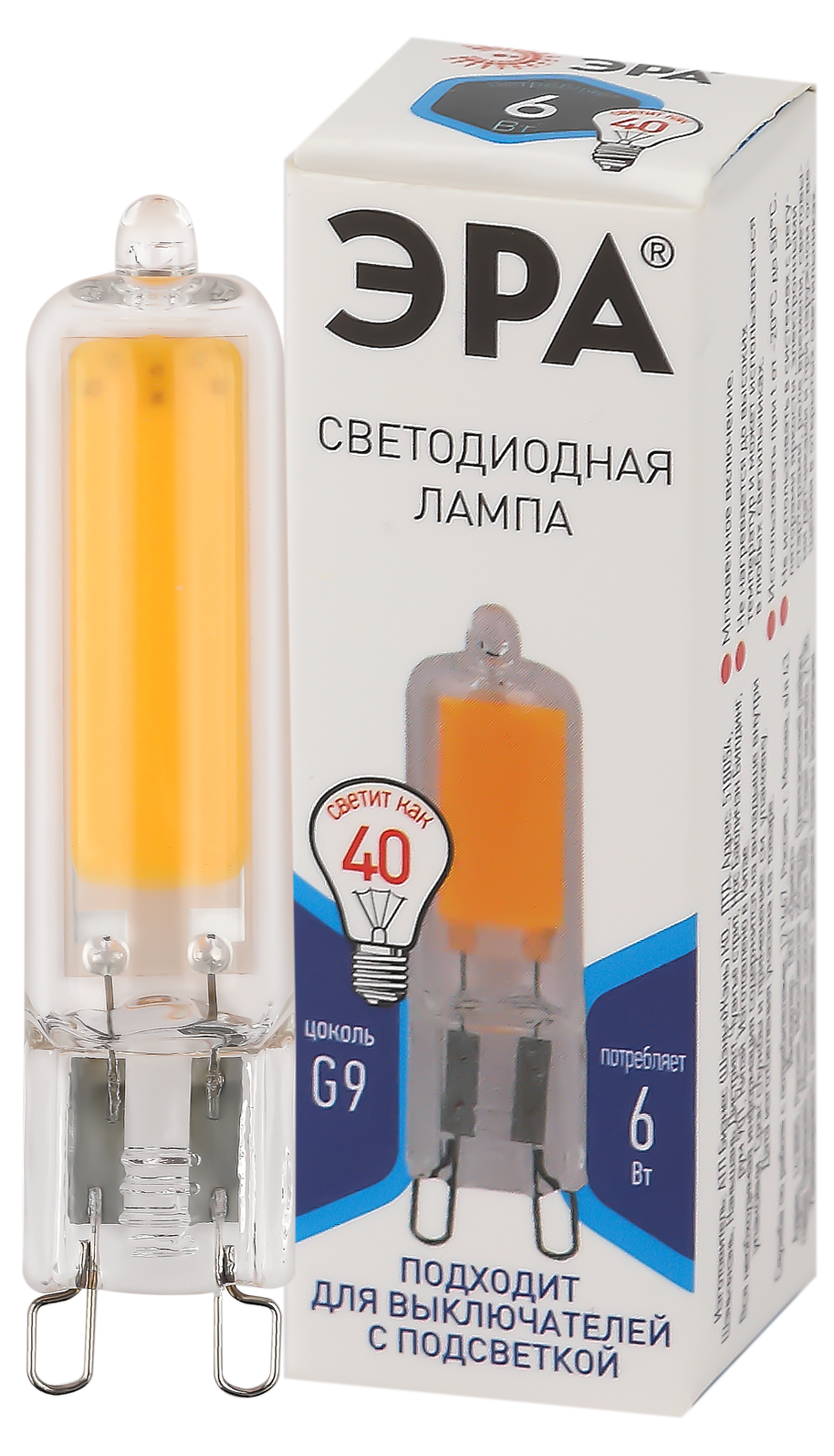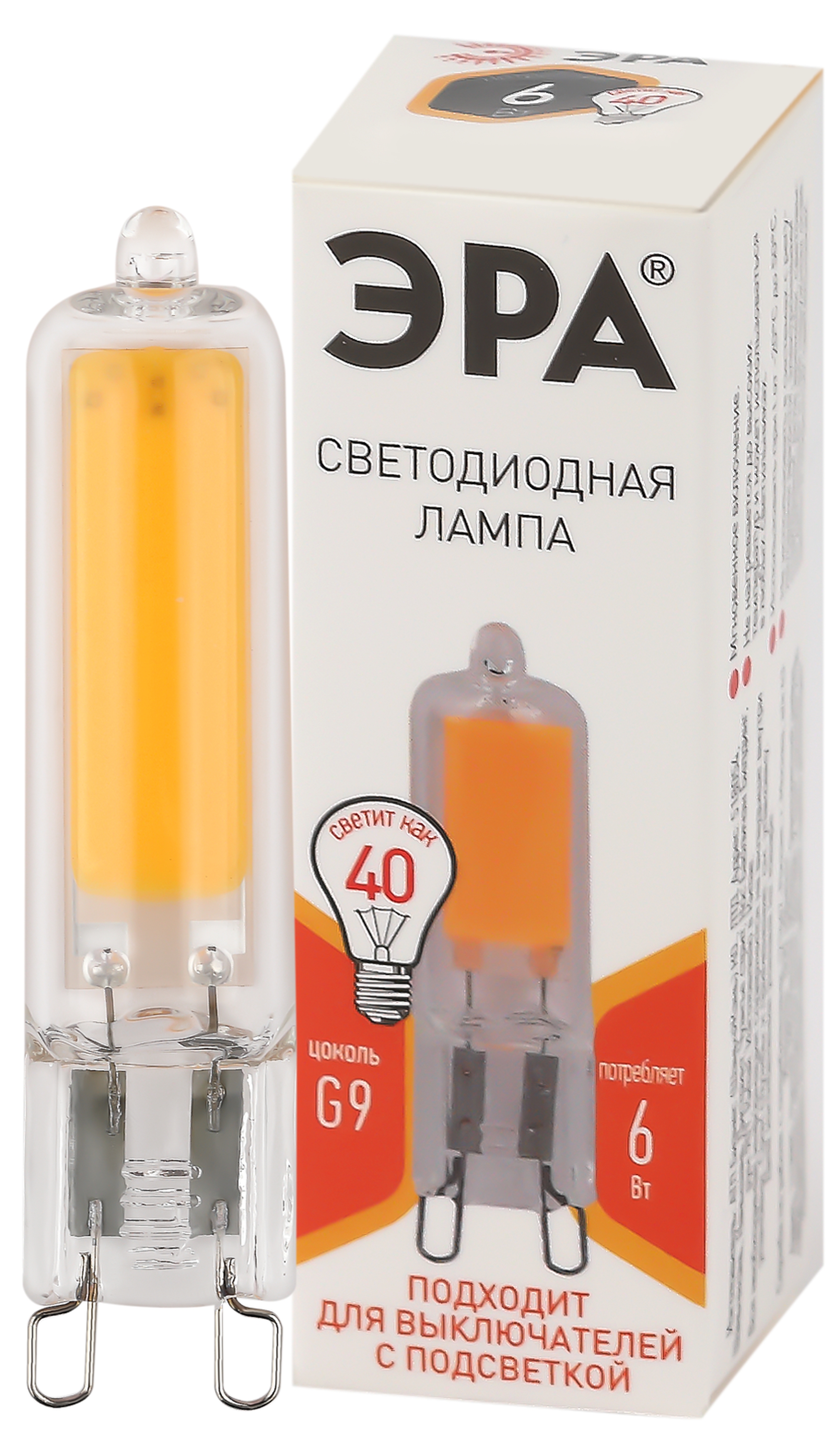 Лампочка светодиодная ЭРА STD LED JCD-6W-GL-840-G9 G9 6Вт капсула нейтральный белый свет