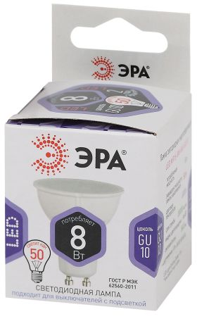 Лампочка светодиодная ЭРА STD LED MR16-8W-12V-827-GU5.3 GU5.3 8 Вт софит теплый белый свет