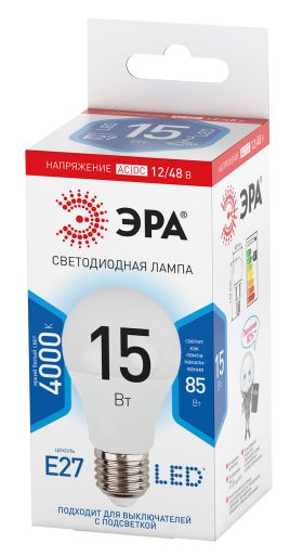 Лампочка светодиодная ЭРА STD LED A60-15W-12/48V-840-E27 E27 / Е27 15Вт груша нейтральный белый свет