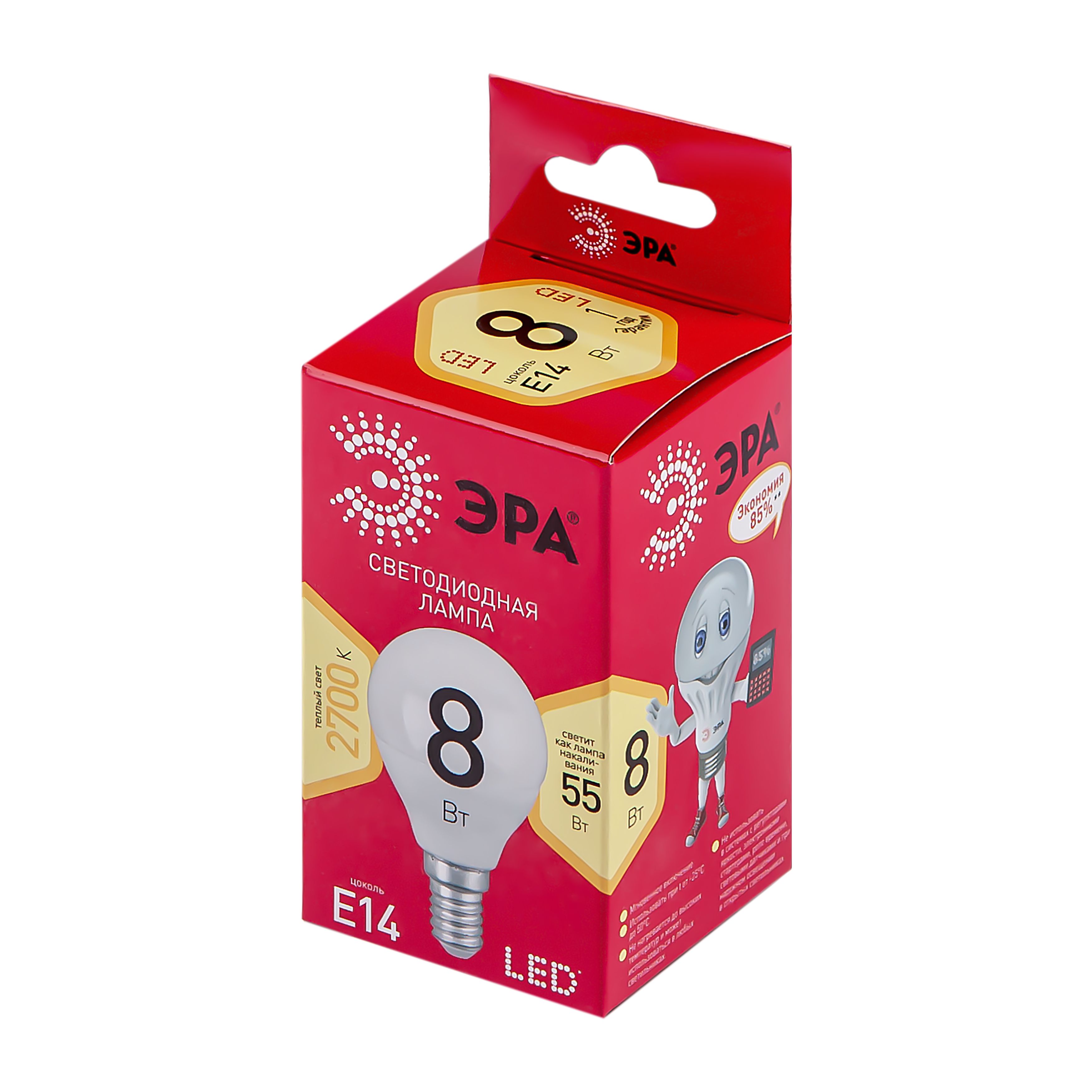 Лампочка светодиодная ЭРА RED LINE LED P45-8W-827-E14 R Е14 / E14 8 Вт шар теплый белый свет
