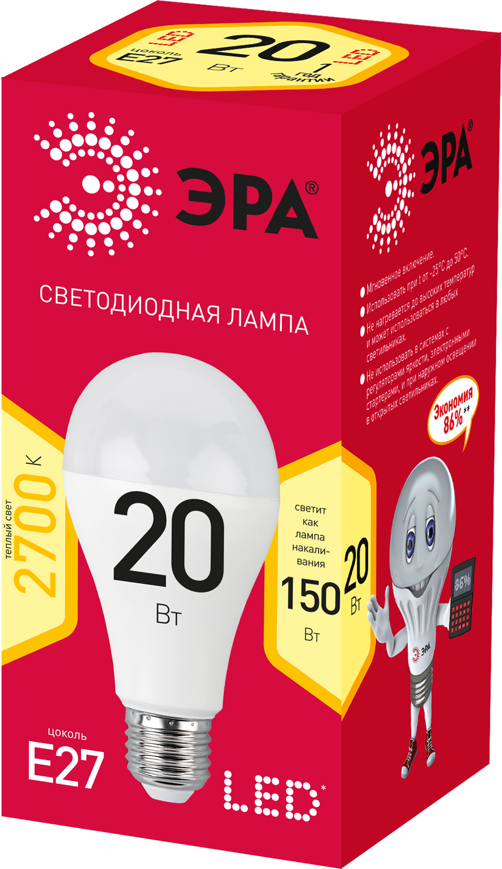 Лампочка светодиодная ЭРА RED LINE LED A65-20W-827-E27 R Е27 / E27 20 Вт груша теплый белый свет