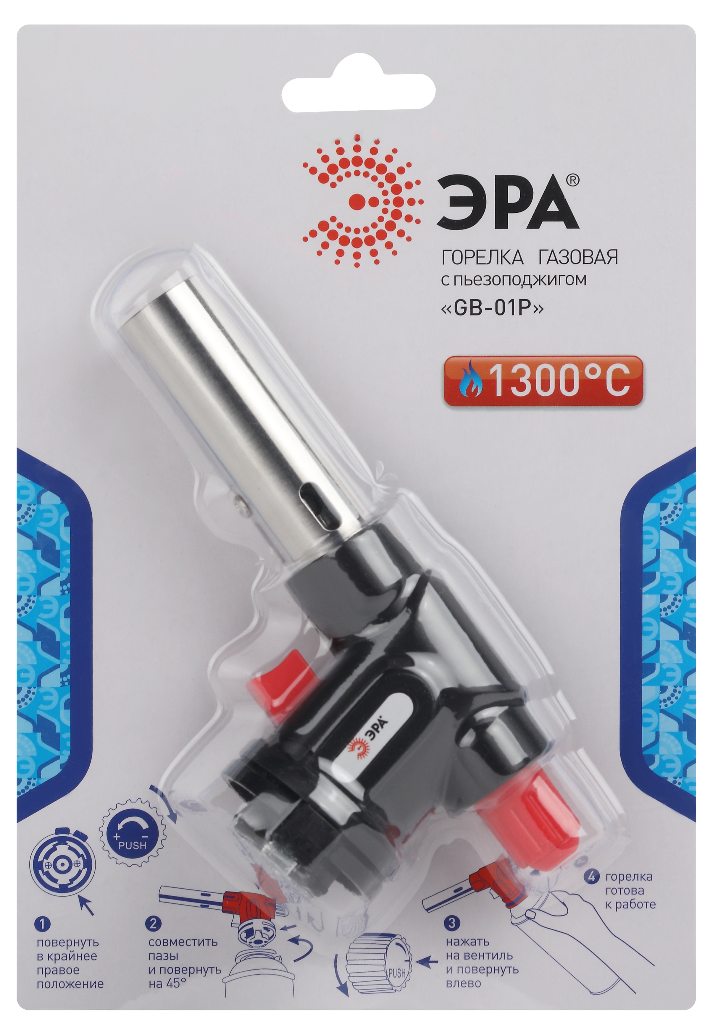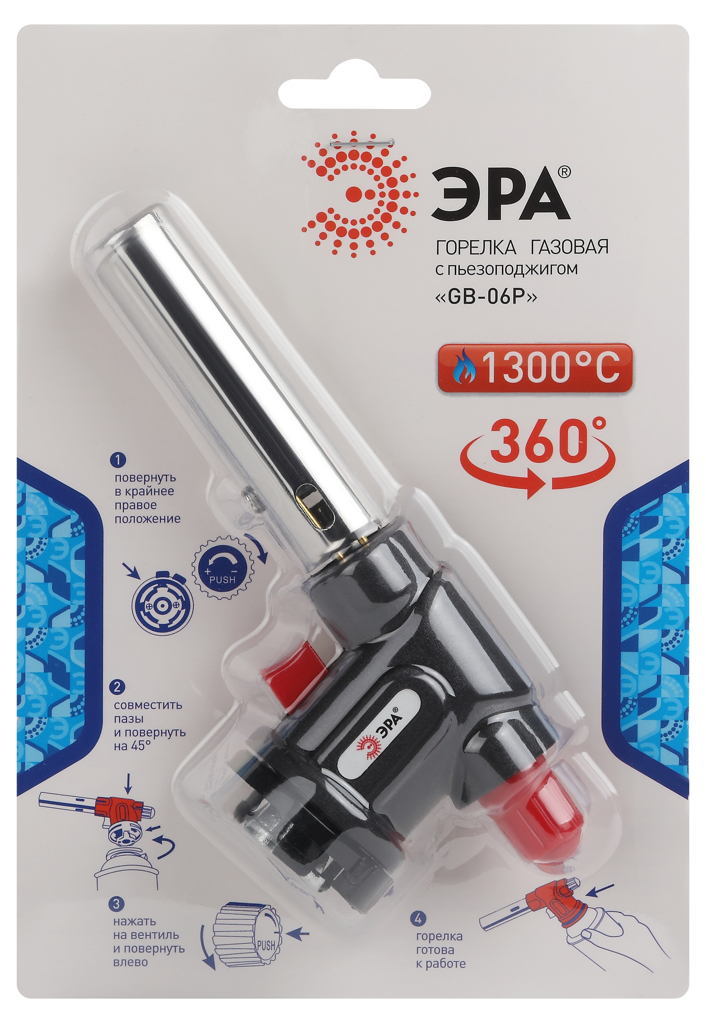 Горелка газовая ЭРА GB-06P с пьезоподжигом установка на баллон вращение 360 градусов