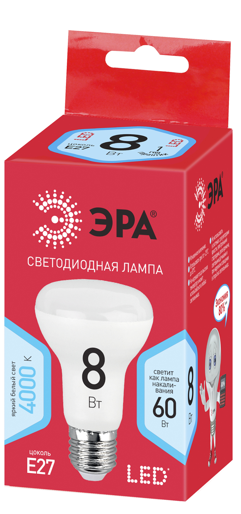 Лампочка светодиодная ЭРА RED LINE LED R63-8W-840-E27 R E27 / Е27 8Вт рефлектор нейтральный белый свет