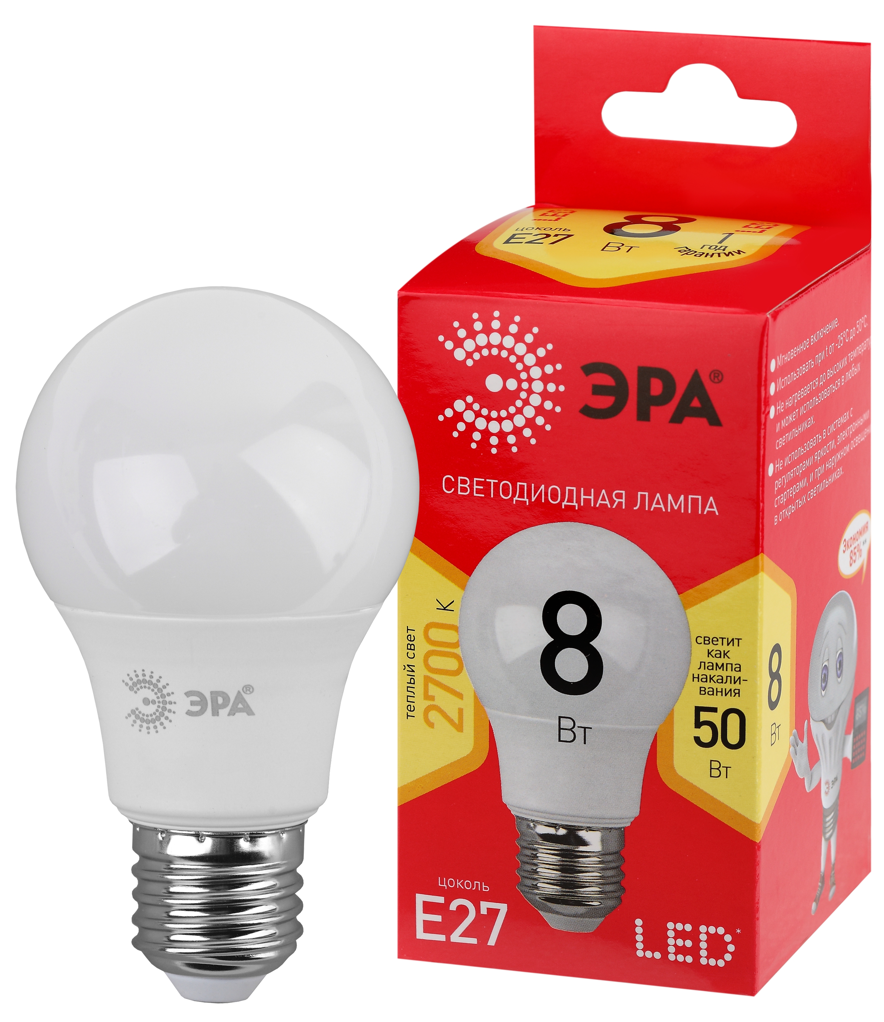 Лампочка светодиодная ЭРА RED LINE LED A55-8W-827-E27 R Е27 / E27 8 Вт груша теплый белый свет
