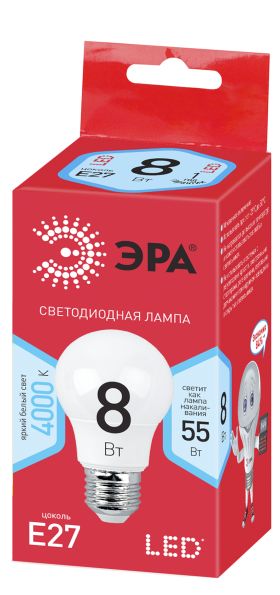 Лампочка светодиодная ЭРА RED LINE LED A55-8W-840-E27 R Е27 / E27 8Вт груша нейтральный белый свет
