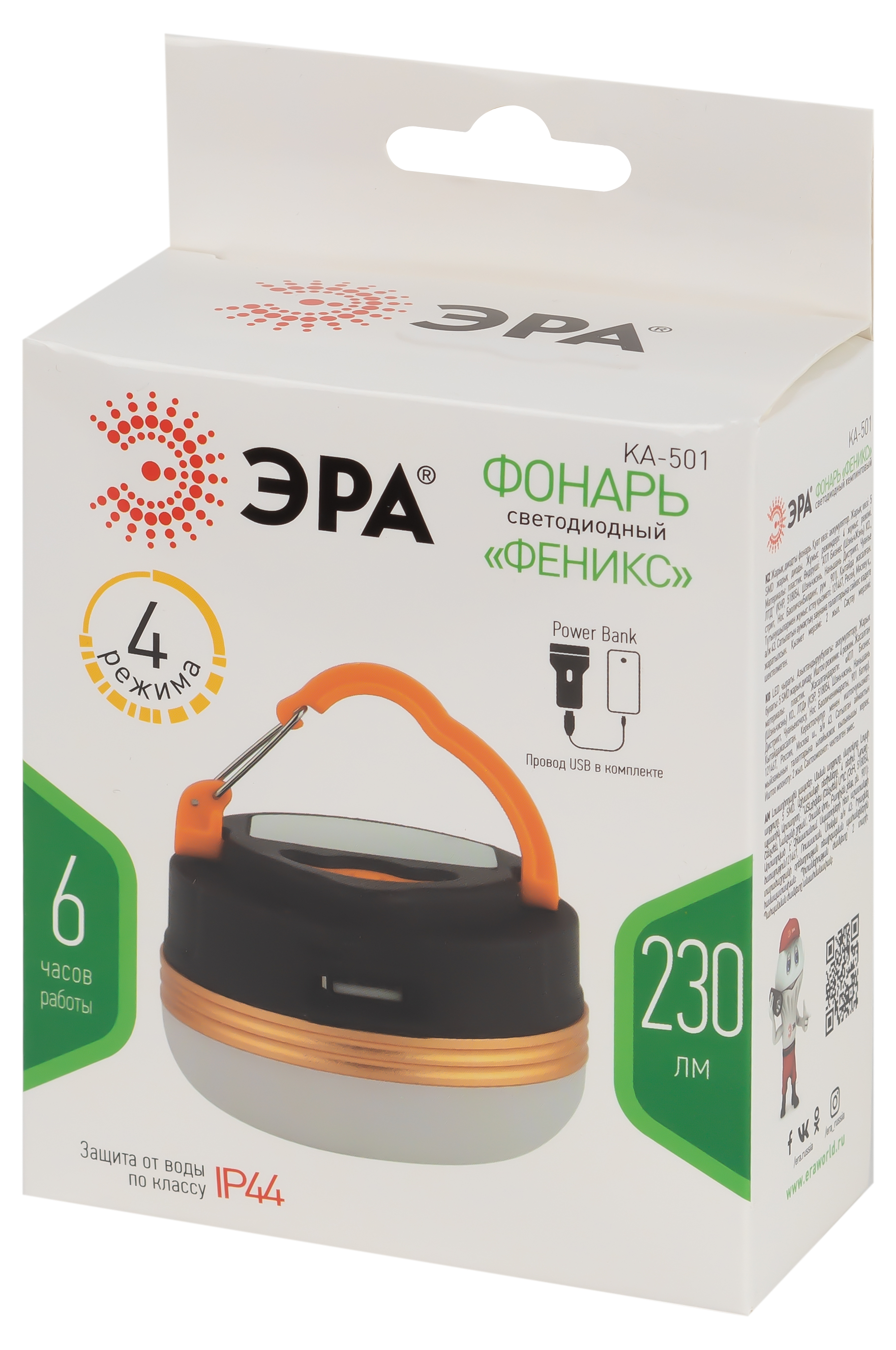 Фонарь кемпинговый светодиодный ЭРА KA-501 Феникс аккумуляторный 3Вт 1200мАч