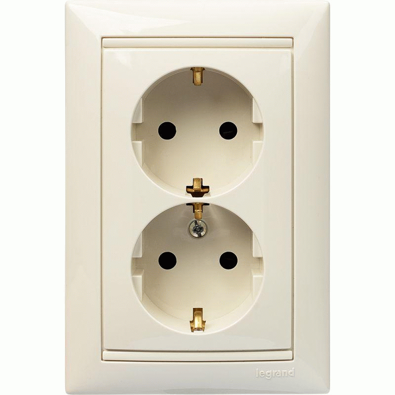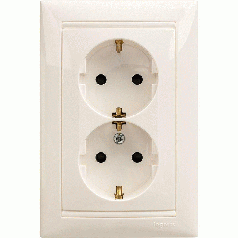 Розетка 2-м СП Valena 16А IP20 2х2P+E с заземл. защ. шторки немецк. стандарт в сборе сл. кость Leg 774371