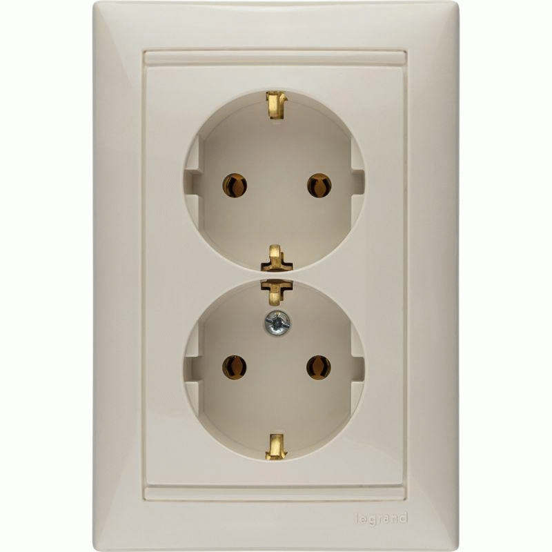 Розетка 2-м СП Valena 16А IP20 2х2P+E с заземл. немецк. стандарт в сборе сл. кость Leg 774370