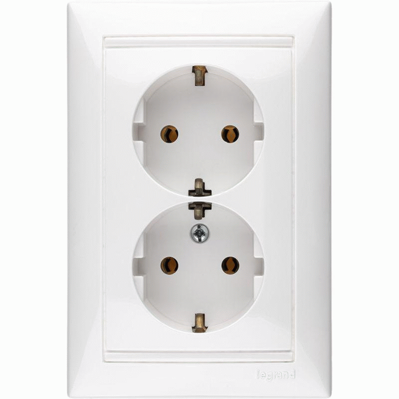 Розетка 2-м СП Valena 16А IP20 2х2P+E с заземл. немецк. стандарт на винтах в сборе бел. Leg 774400