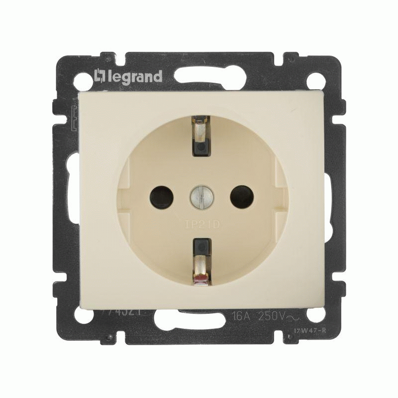 Розетка 1-м СП Valena 16А IP21 без заземл. на винтах механизм сл. кость Leg 774316