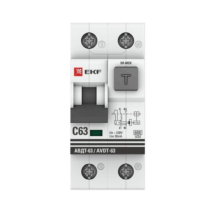 Выключатель автоматический дифференциального тока 2п C 16А 30мА тип A 6кА АВДТ-63 2мод. электрон. PROxima EKF DA63-16-30e