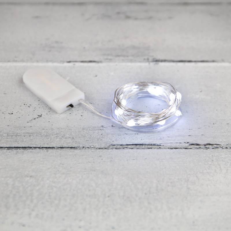 Гирлянда «Роса» 2 м, 20 диодов, цвет белый, тонкий батарейный блок