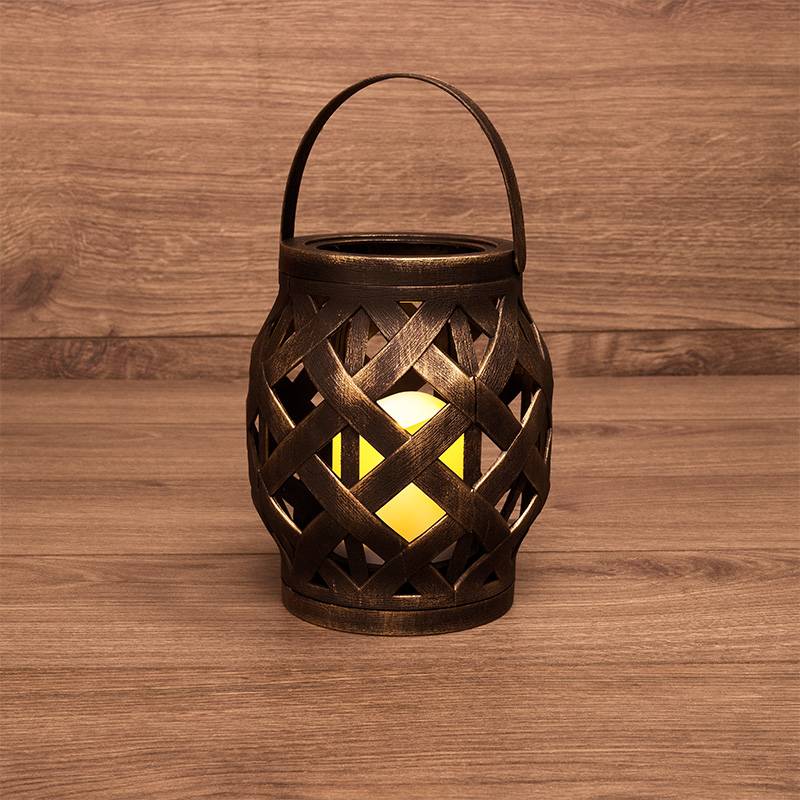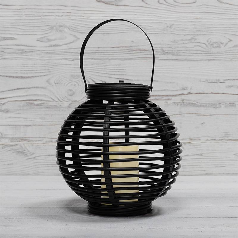 Декоративный фонарь на солнечной батарее 20х20х22 см, черный плетеный корпус, теплый белый цвет свечения NEON-NIGHT
