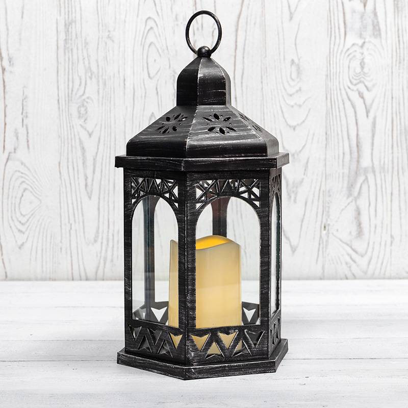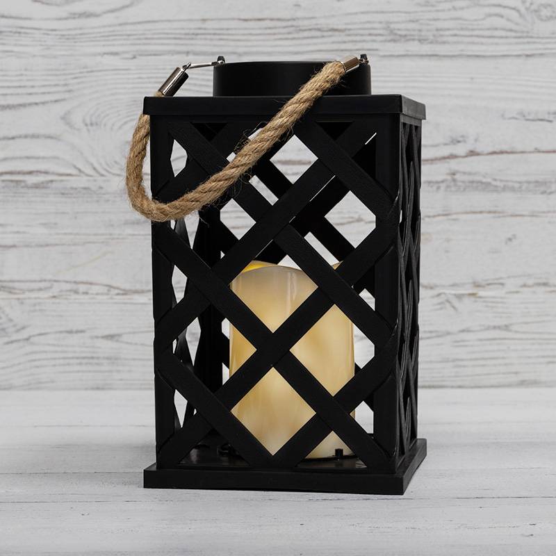 Декоративный фонарь со свечой 18x16,5x31 см, черный корпус, теплый белый цвет свечения NEON-NIGHT