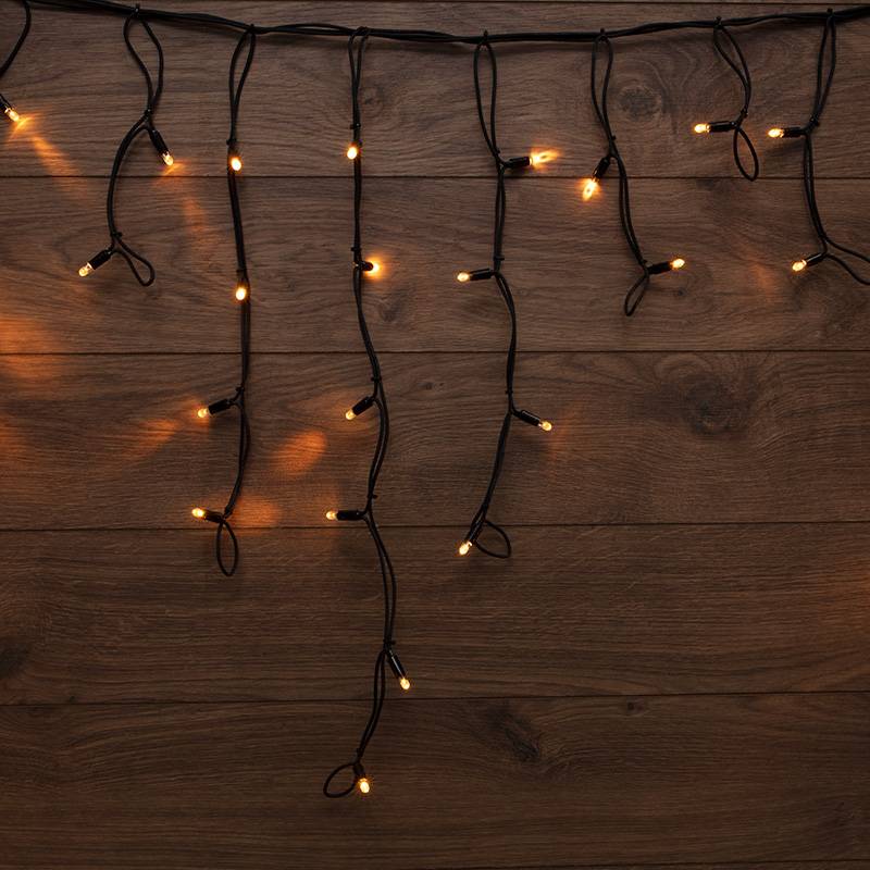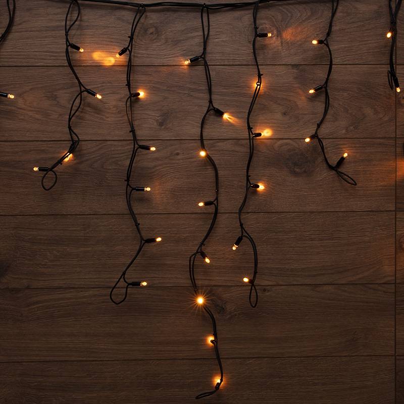 Гирлянда Айсикл (Бахрома) светодиодная 5х0,7 м, с эффектом мерцания, 152 LED, черный провод каучук, теплое белое свечение NEON-NIGHT