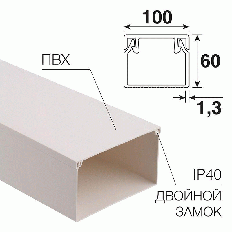 Кабель-канал 100х60 мм белый (8 м/уп) REXANT