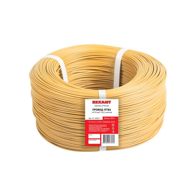 Провод ПГВА REXANT 1х0.75 мм², Cu, желтый, бухта 200 м