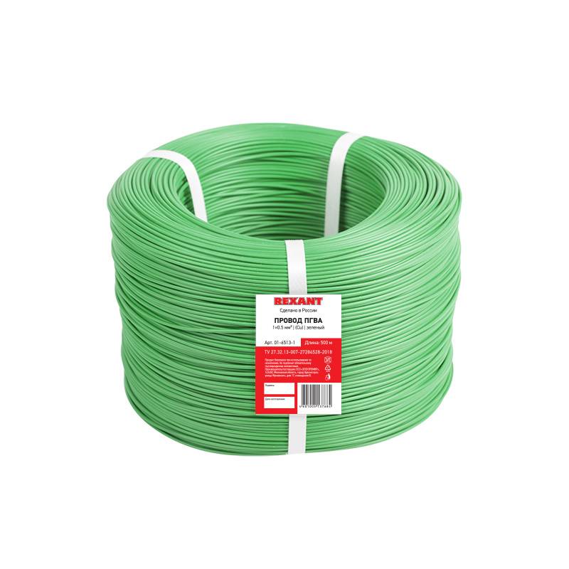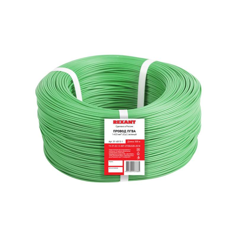 Провод ПГВА REXANT 1х0.50 мм², Cu, зеленый, бухта 500 м