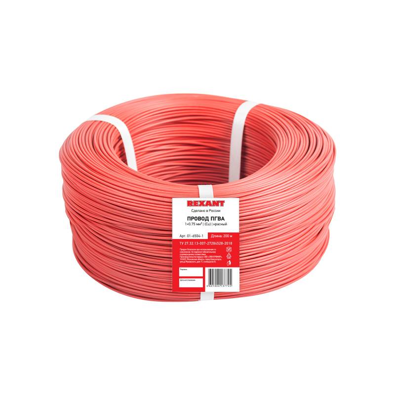 Провод ПГВА REXANT 1х0.75 мм², Cu, красный, бухта 200 м