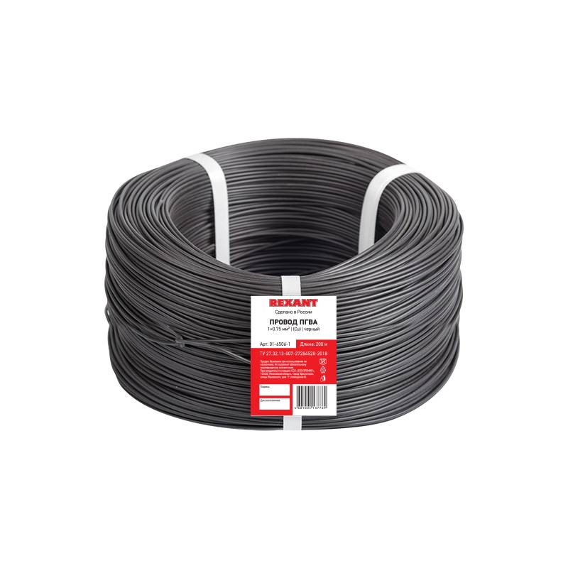 Провод ПГВА REXANT 1х0.75 мм², Cu, черный, бухта 200 м