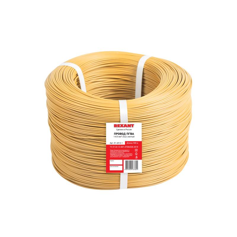 Провод ПГВА REXANT 1х0.50 мм², Cu, желтый, бухта 500 м
