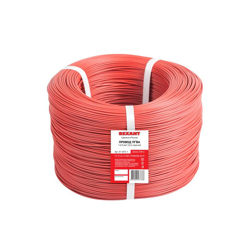 Провод ПГВА REXANT 1х0.50 мм², Cu, красный, бухта 500 м