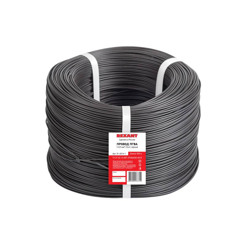 Провод ПГВА REXANT 1х0.50 мм², Cu, черный, бухта 500 м