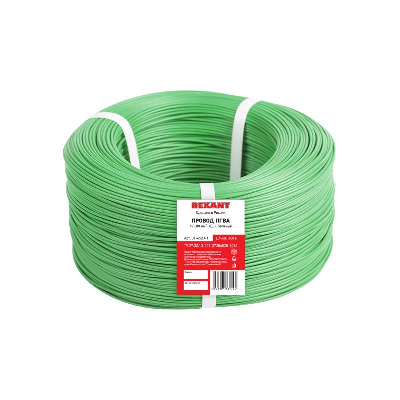 Провод ПГВА REXANT 1х1.00 мм², Cu, зеленый, бухта 200 м