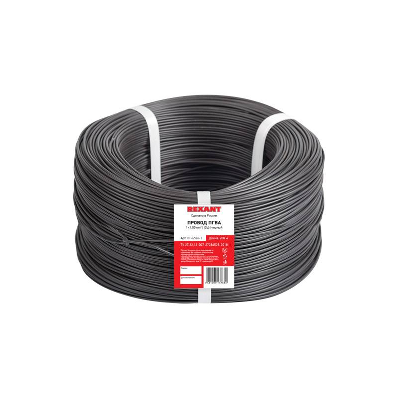 Провод ПГВА REXANT 1х1.00 мм², Cu, черный, бухта 200 м