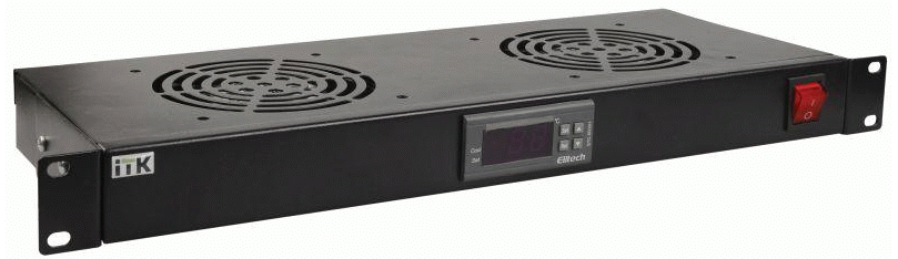 Модуль 19 дюйм 1U вент. 2 вентилятора с цифровым термостатом черн. ITK FM05-1U2TS