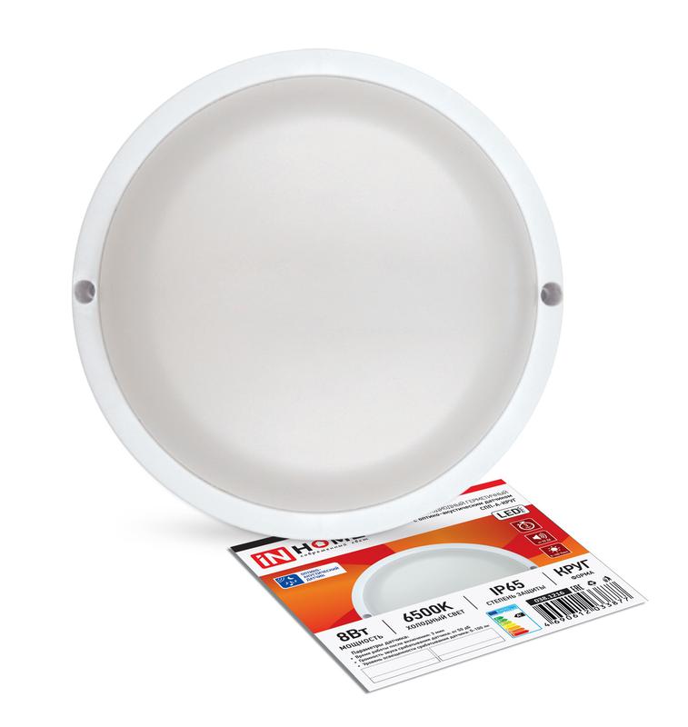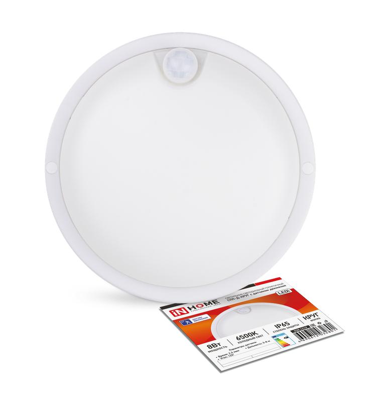 Светильник светодиодный герметичный СПП-А-КРУГ 8Вт 230В 6500К 640лм с оптико-акустическим датч. IP65 IN HOME 4690612033877