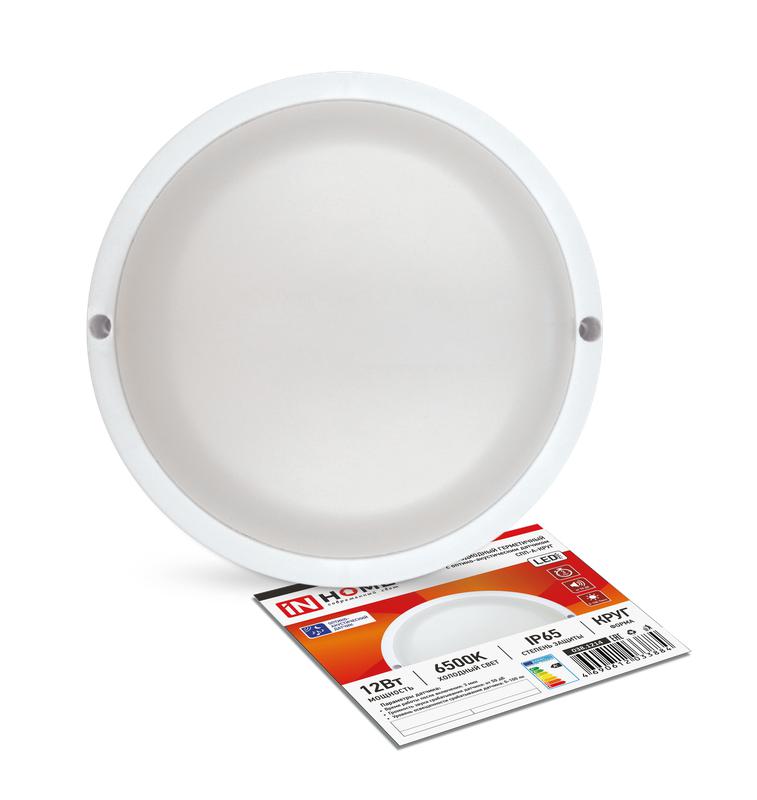 Светильник светодиодный герметичный СПП-А-КРУГ 12Вт 230В 6500К 960лм с оптико-акустическим датчиком IP65 IN HOME 4690612033884